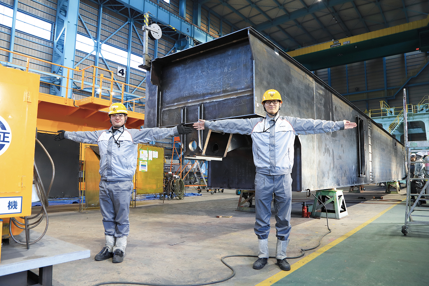 日立プラントメカニクスの工場見学で初めて天井クレーンを見て、大型構造物の迫力に惚れました。また専門校で学んだ自分のスキルを活かす仕事に就きたいという想いもあり選びました。